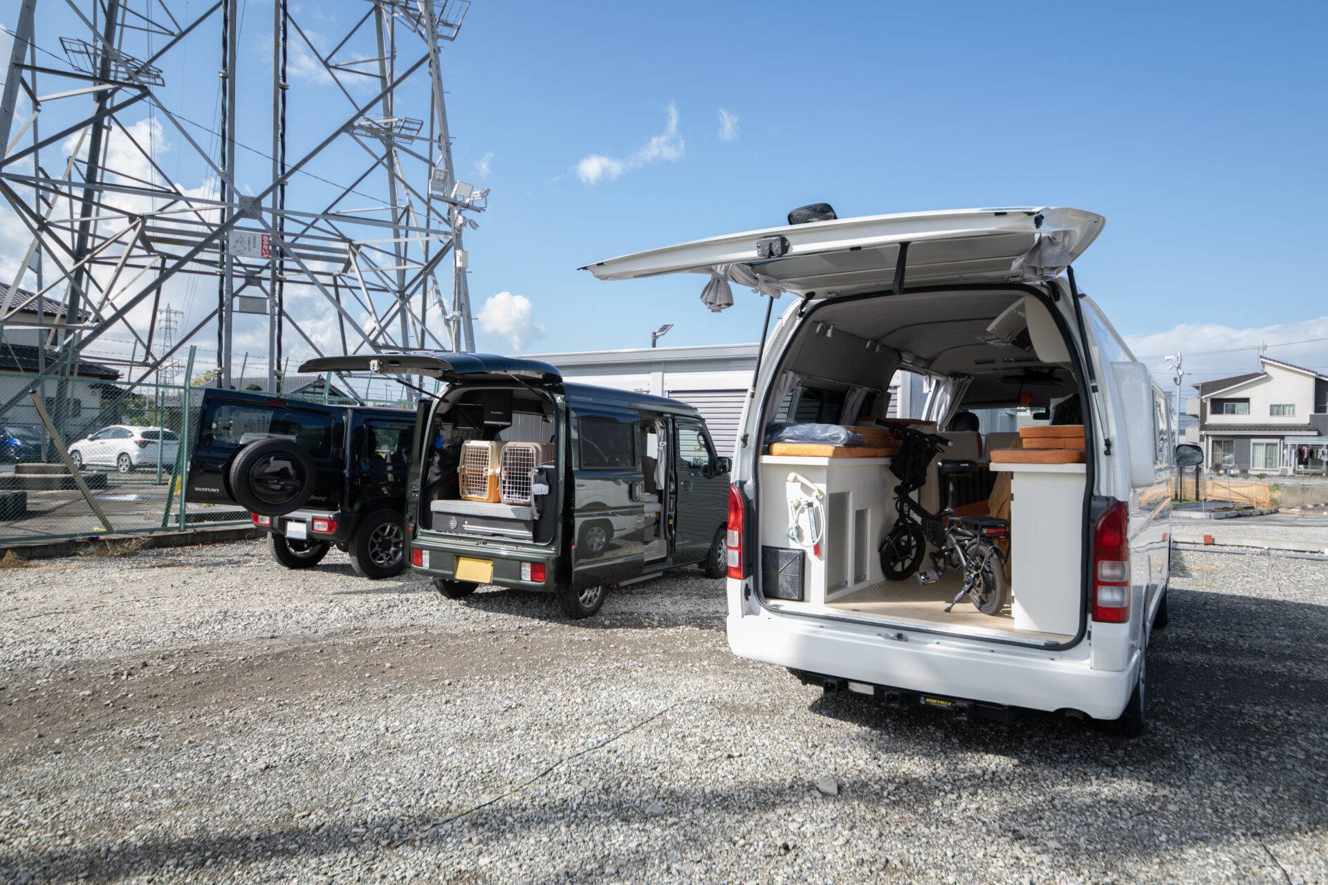 | 利用可能車種 | ・ジムニー ・ハイエース(キャンピング仕様) ・スズキエブリ(キャンピング仕様) |